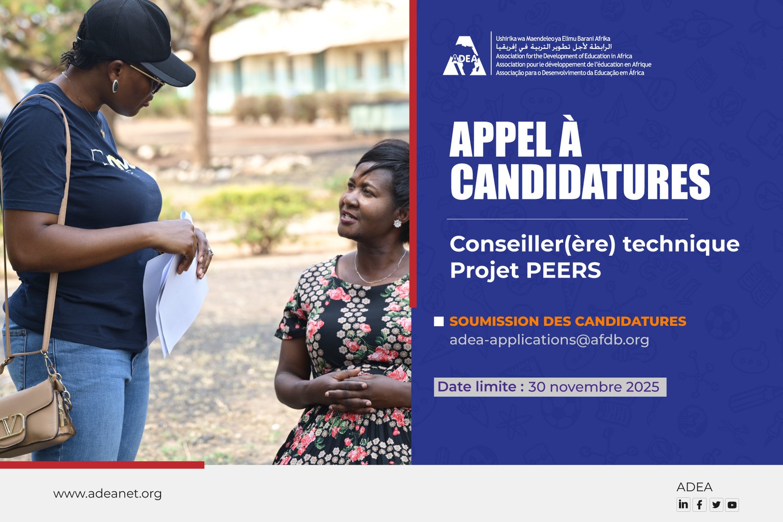 Les candidatures doivent être envoyées à adea-applications@afdb.org au plus tard le 30 novembre 2025 à minuit (00h00) GMT. L'objet de l'e-mail doit être « Conseiller technique – Projet PEERS ».