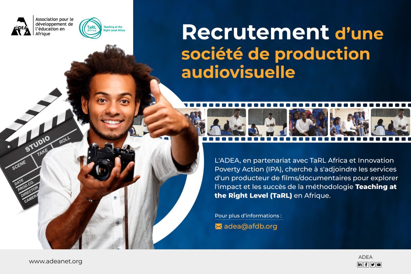 Les candidatures doivent être envoyées à adea-applications@afdb.org au plus tard le vendredi 30 juin 2024. L’objet du courriel doit être « Proposition de documentaire sur le niveau d’apprentissage ».