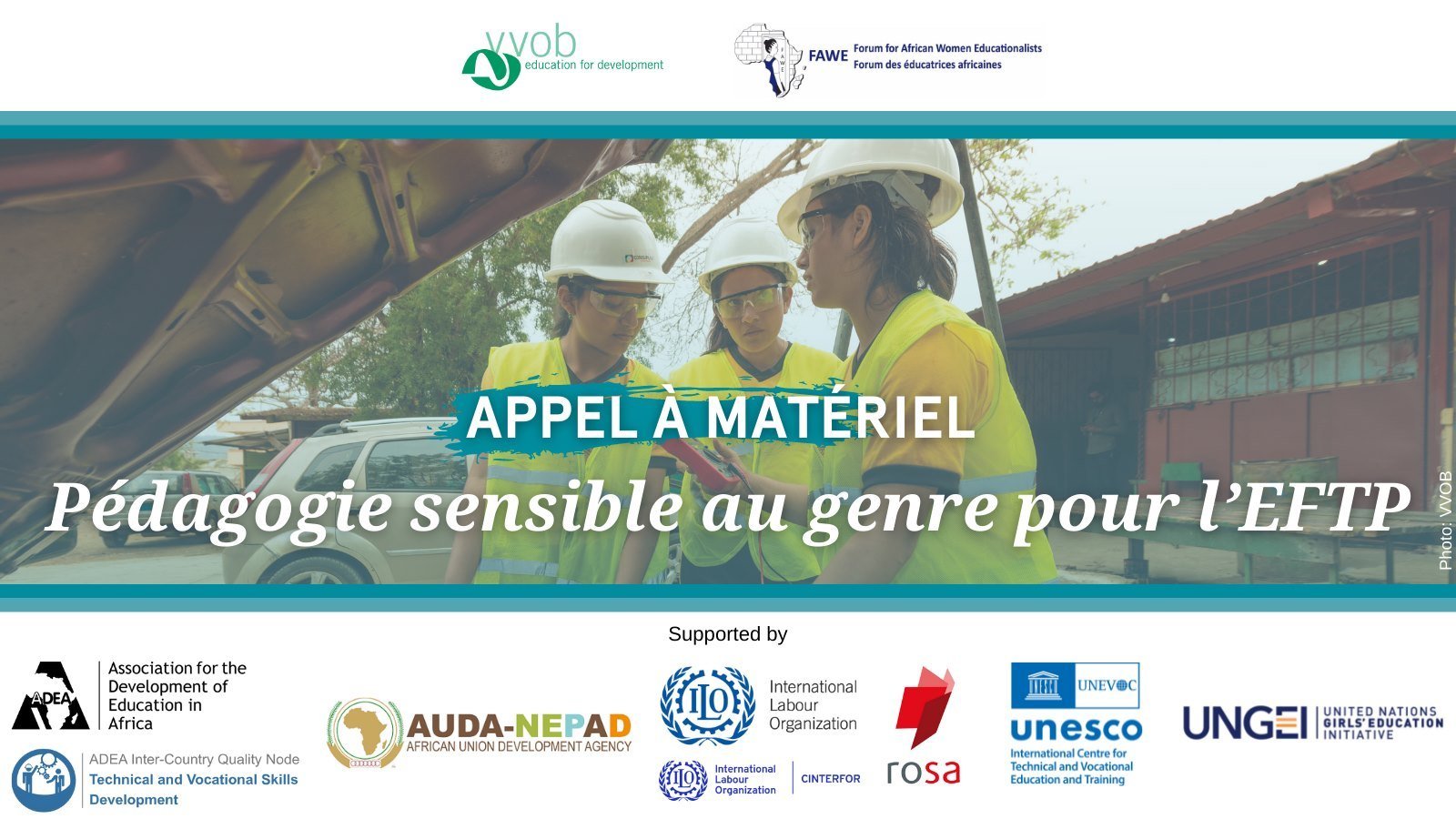 Votre soutien à cet effort du FAWE, de VVOB - education for development et d’autres partenaires pour regrouper ces différents supports dans une «Ressource GRP4TVET» ouverte serait le bienvenu. La Ressource fournira des exemples de bonnes pratiques d’une pédagogie sensible au genre venant du monde entier et démontrera comment l’EFTP peut promouvoir concrètement l’équité et l’égalité de genre.