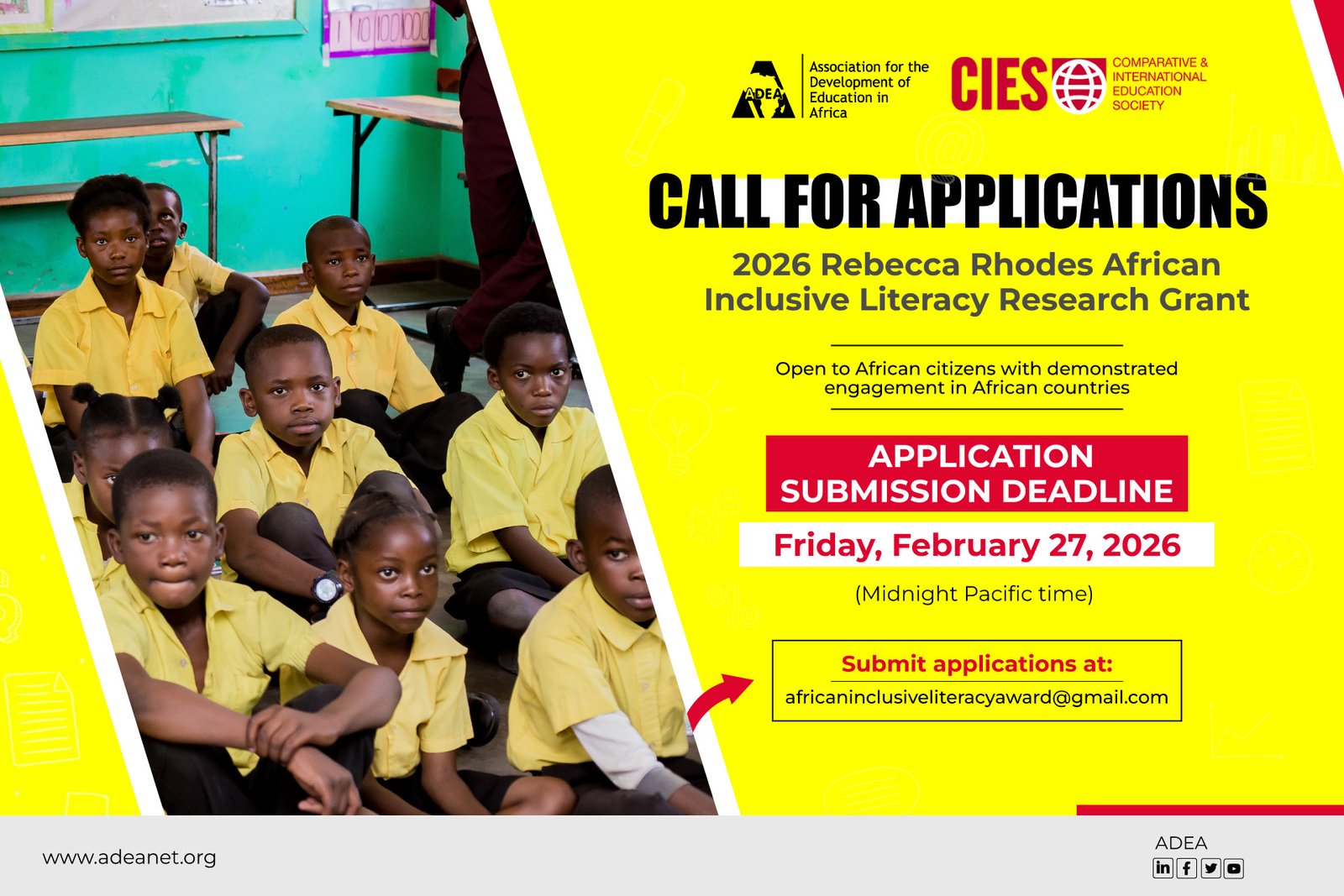 ADEA and the Comparative and International Education Society (CIES) invite African scholars and practitioners to apply for the 3rd Rebecca H. Rhodes African Inclusive Literacy Research Grant. This USD 5,000 research grant supports rigorous, locally grounded studies that advance literacy learning for children and youth with disabilities across Africa.