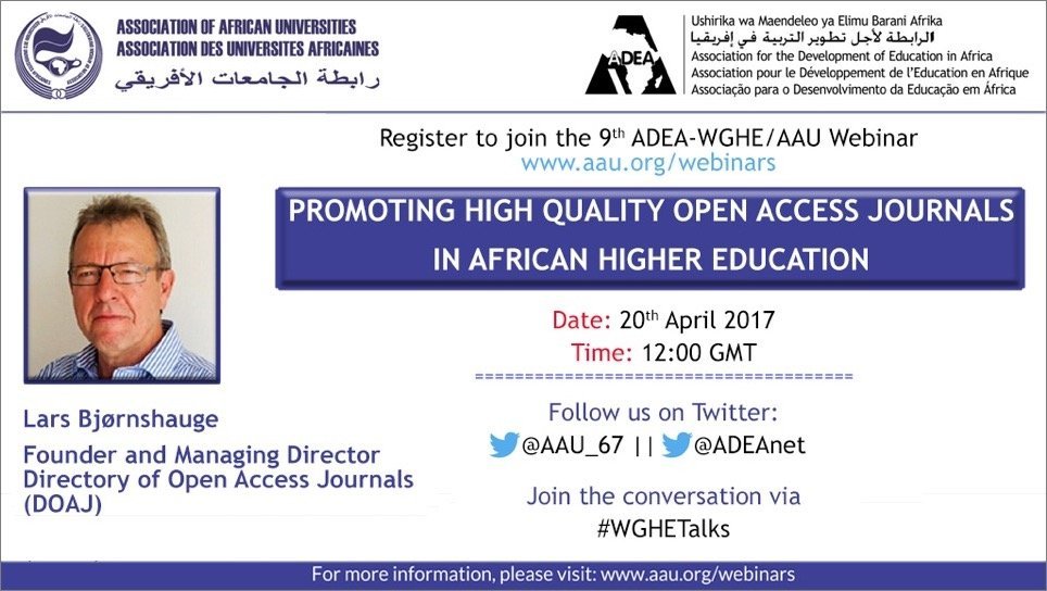 9th ADEA-WGHE/AAU Webinar: Promoting High Quality Open Access Journals in African Higher Education