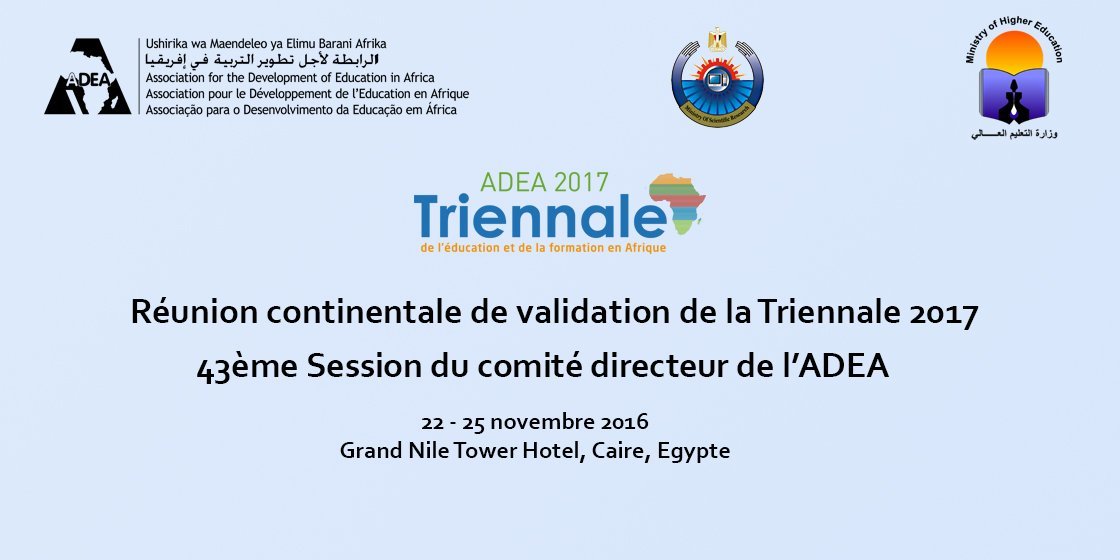 Abidjan, 18 novembre 2016 – S.E. Prof. Dr. Ashraf El Shihy, Ministre de l'Enseignement supérieur et de la Recherche scientifique de la République d'Egypte, par ailleurs Président du Comité technique spécialisé de l’Union Africaine sur l’Education, la Science et la Technologie (CTS-EST) et Président du Comité directeur de l'Association pour le développement de l'éducation en Afrique (ADEA) a invité l’Association à tenir sa Réunion continentale de validation de la Triennale 2017, du 22 au 23 novembre 2016 au Caire, en Egypte qui sera suivie de sa 43ème Réunion du comité directeur du 24 au 25 novembre.
