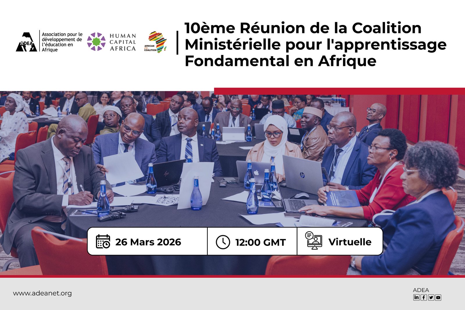 L'ADEA tiendra la 10e édition de la réunion trimestrielle de la Coalition ministérielle pour l'apprentissage fondamental en Afrique en mode virtuel le jeudi 26 mars 2026.