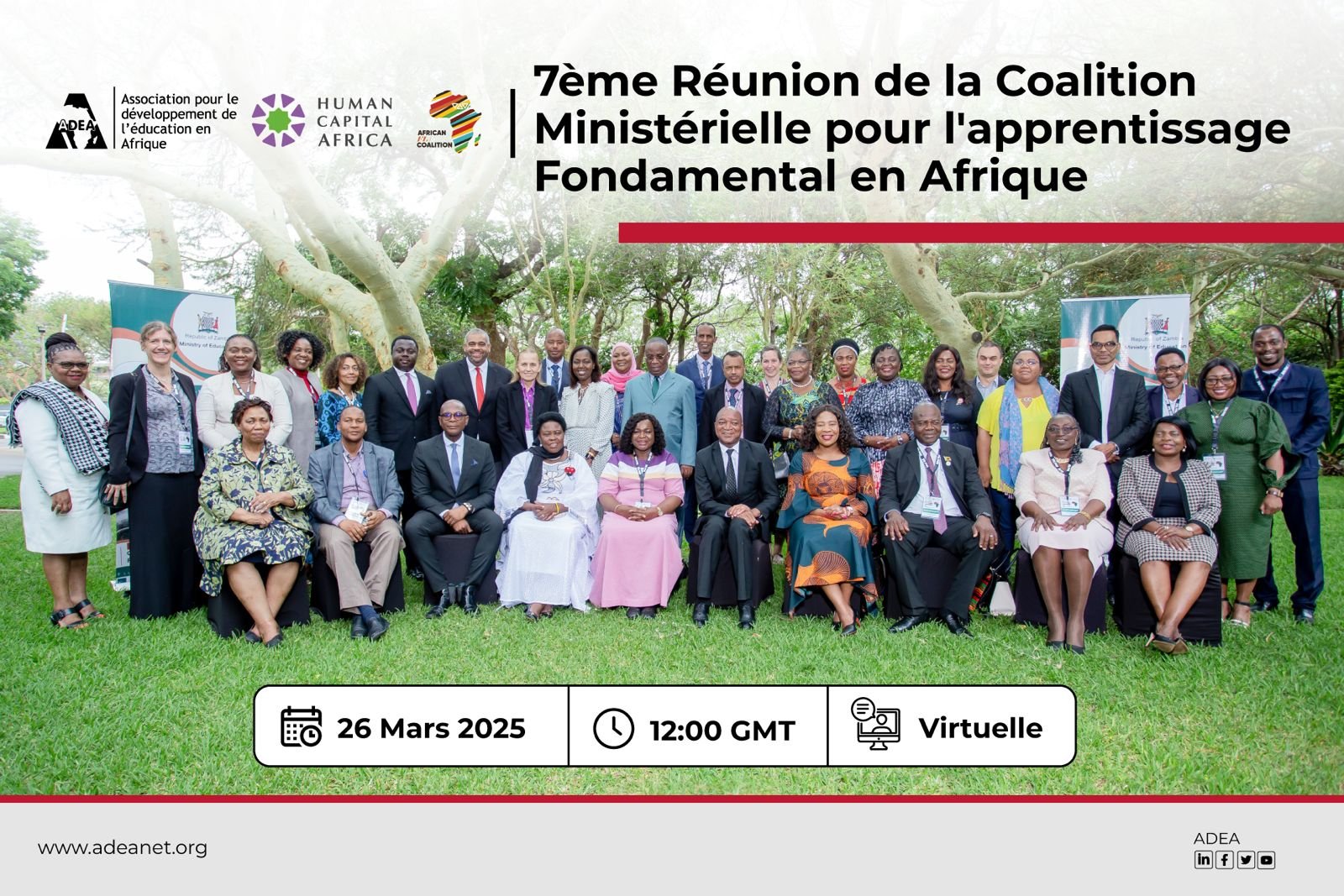 La 7e réunion de la Coalition ministérielle pour l'apprentissage fondamental en Afrique, organisée conjointement par l'Association pour le développement de l'éducation en Afrique (ADEA) et Human Capital Africa (HCA), se tiendra le mercredi 26 mars 2025 à 12h00 GMT.